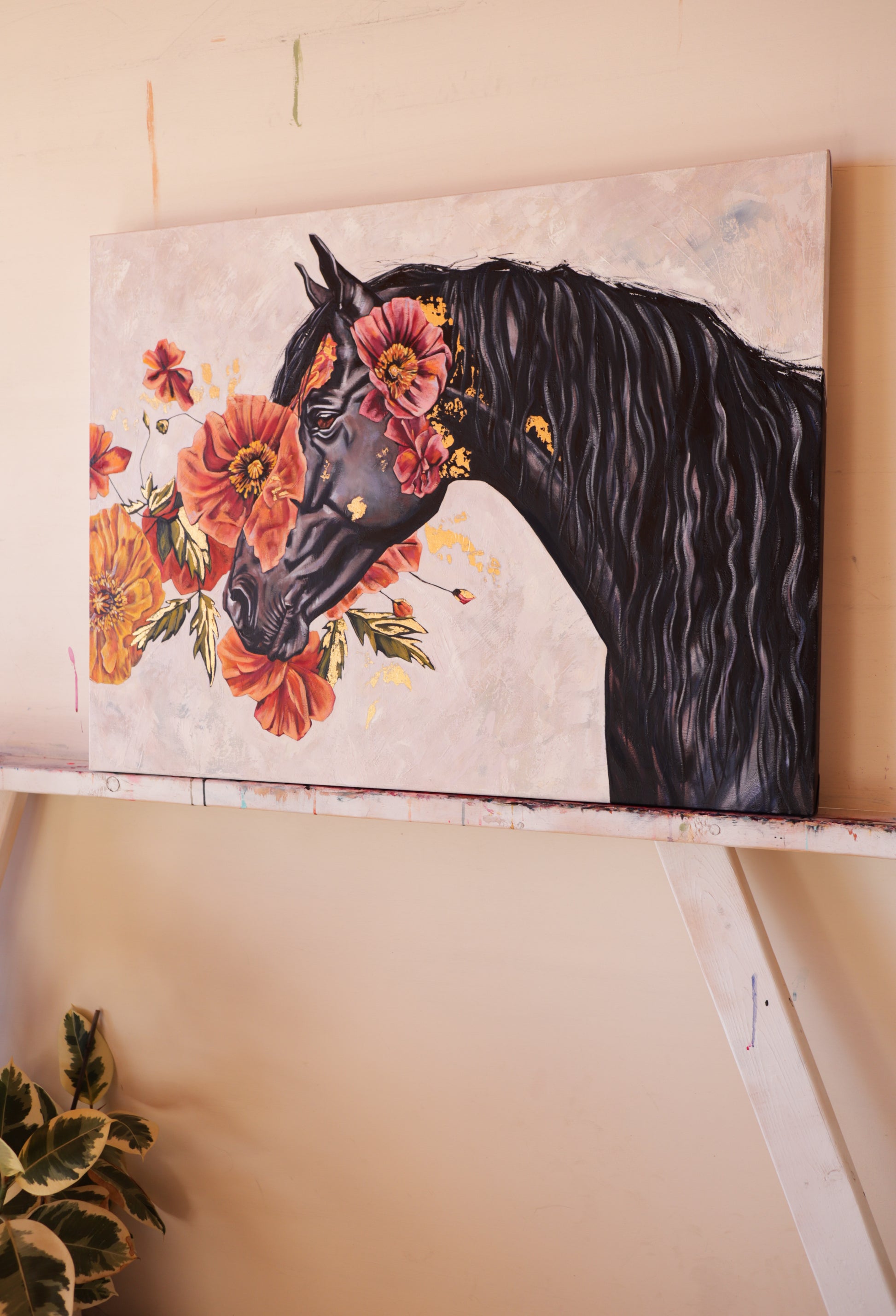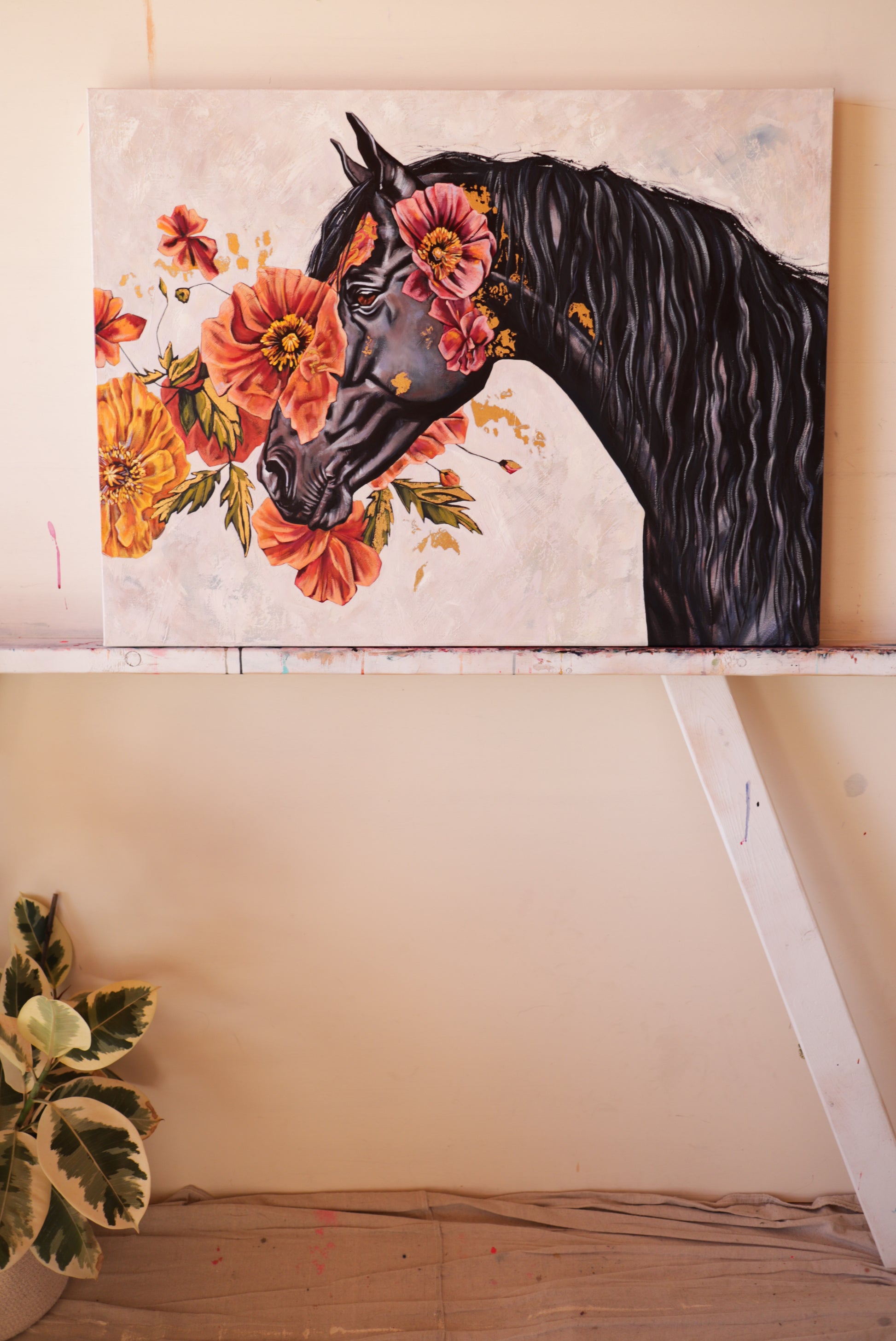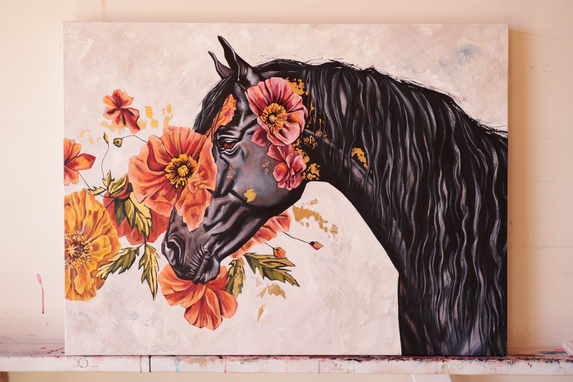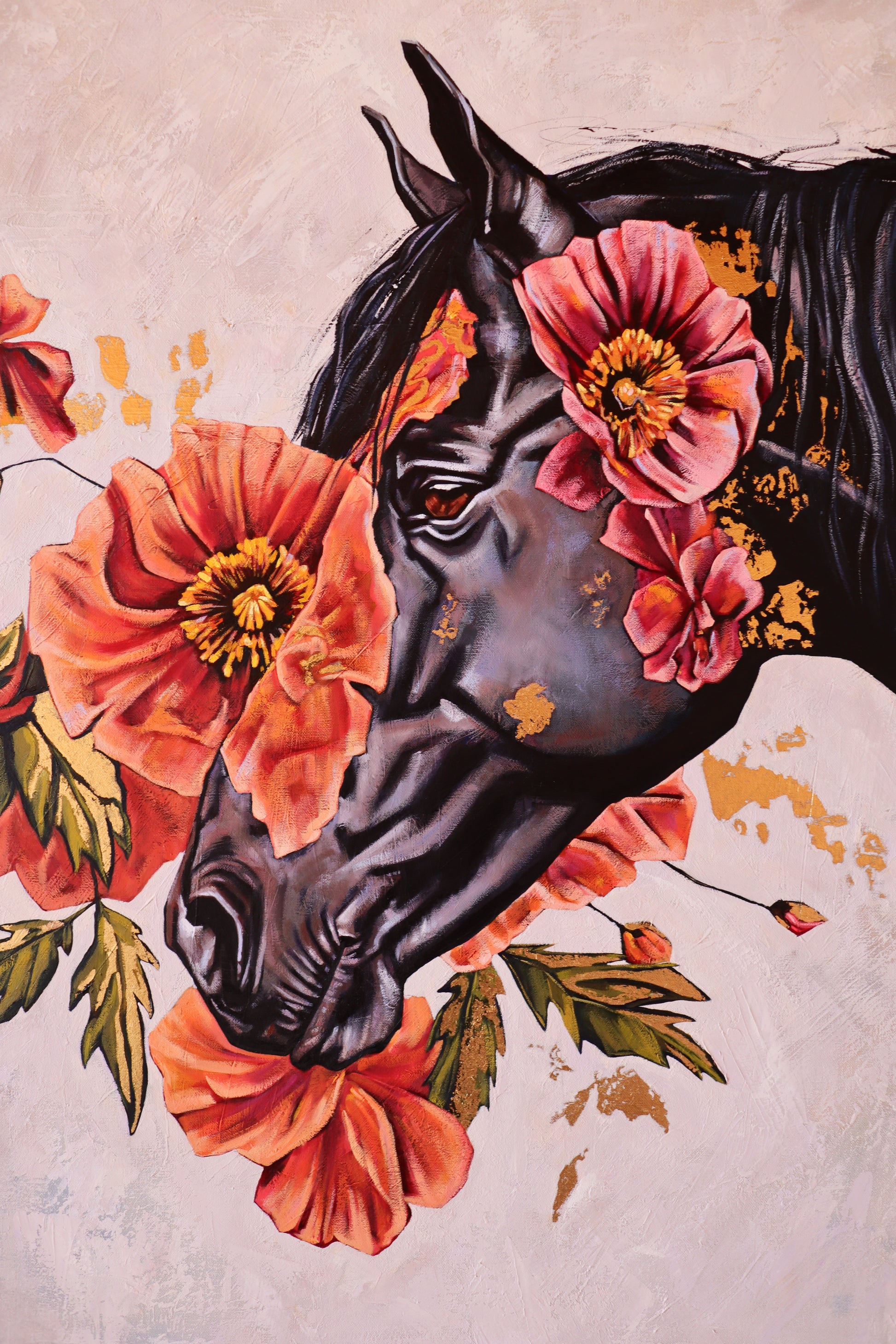 30” x 40” oil, mixed media and gold leaf on premium gallery wrapped canvas.