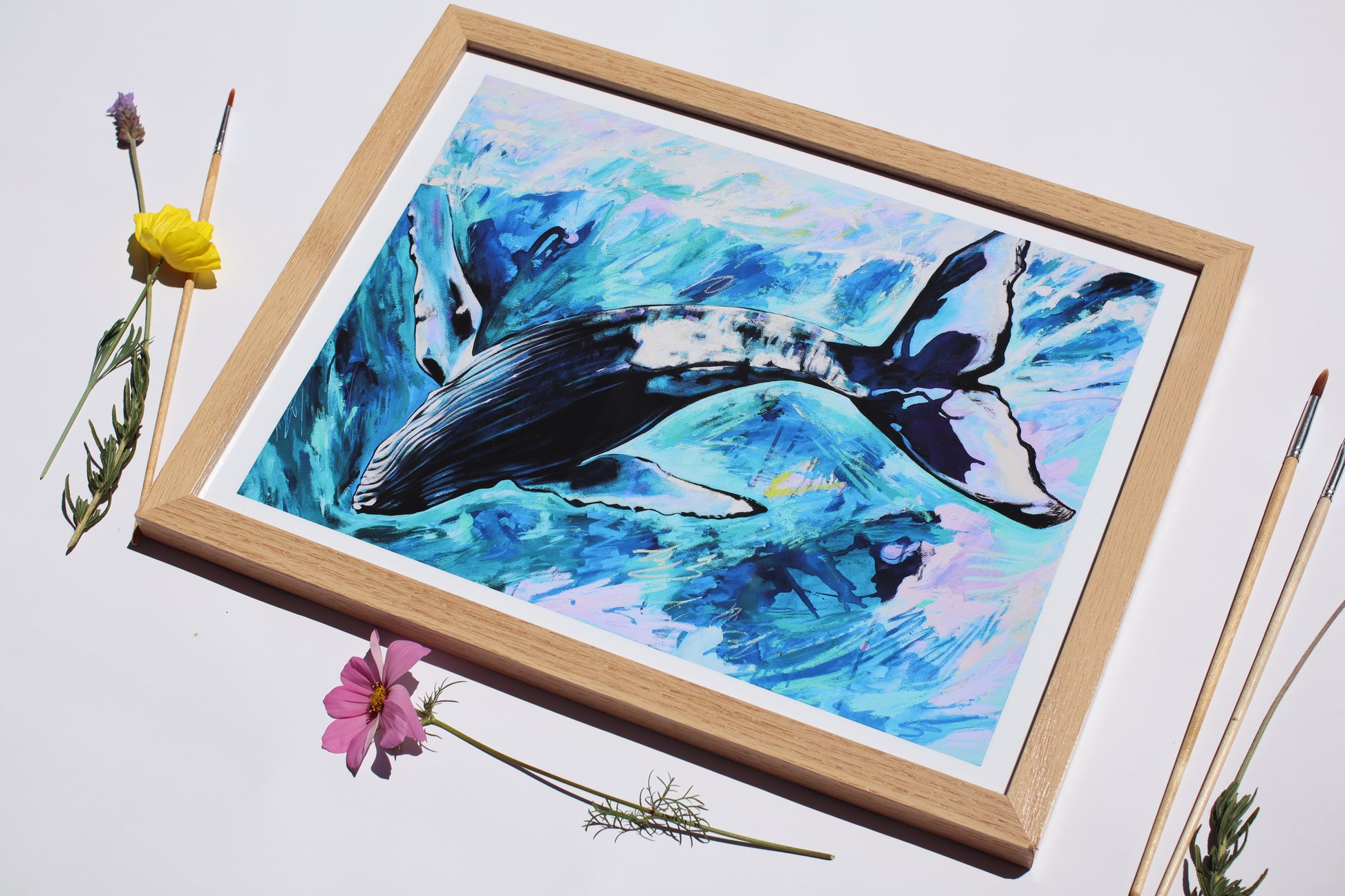100% of the proceeds of the sale of this print goes to Blue Whales Blue Skies- a program that helps protect whales by working with ships to voluntarily slow down in key whale zones along the West Coast of the United States. In 2024 alone, they reduced the risk of fatal strikes by 50%.