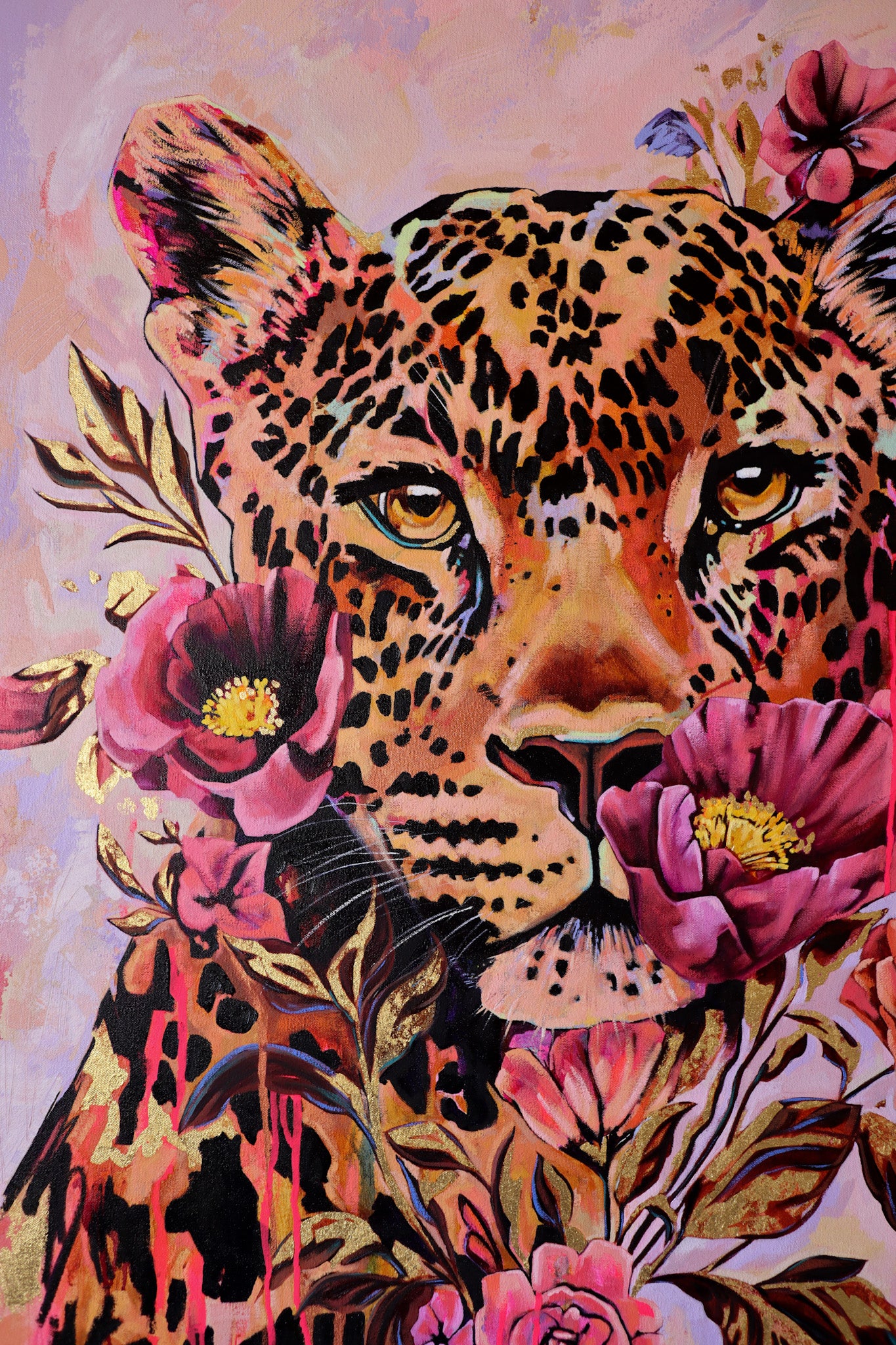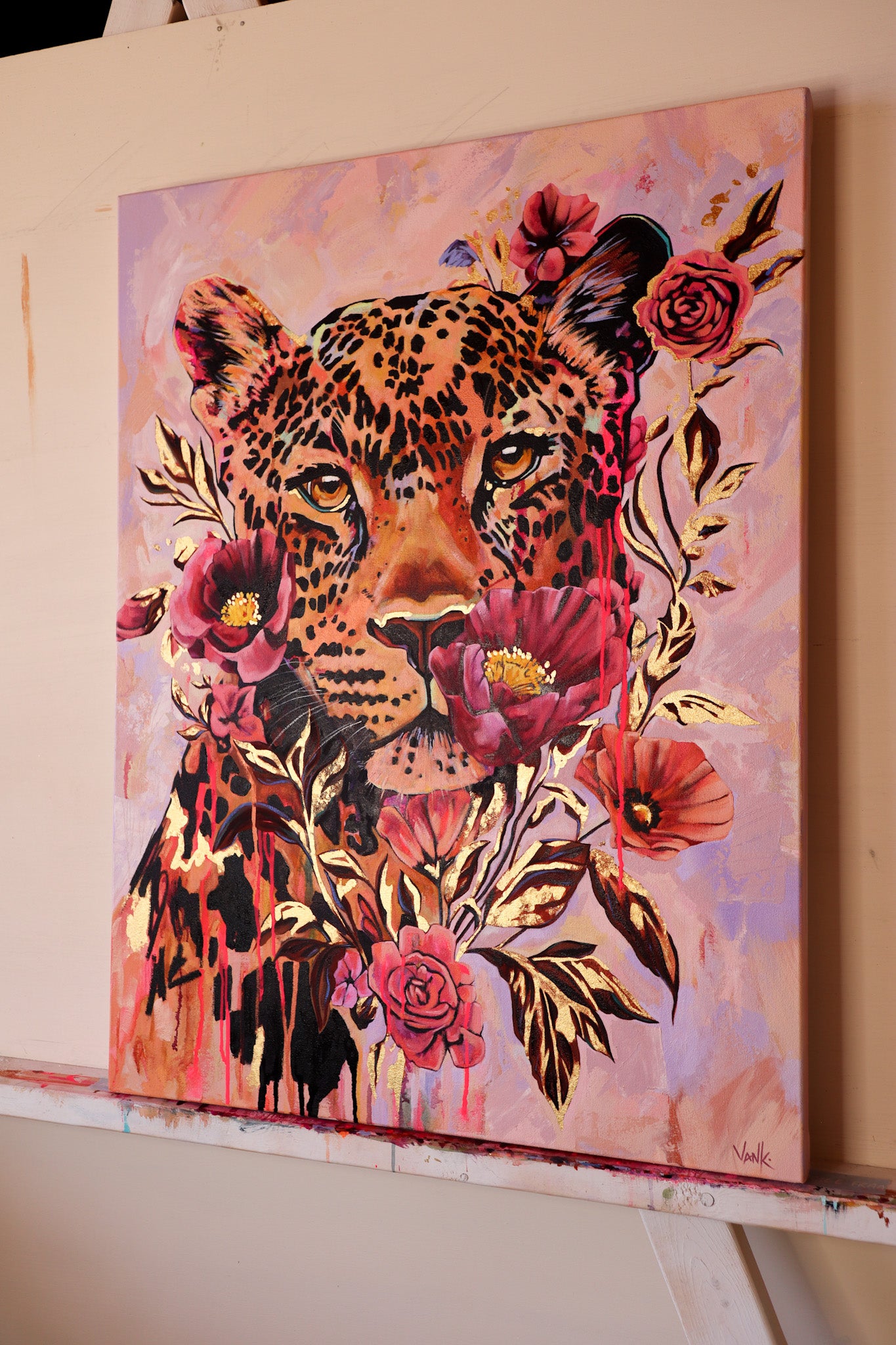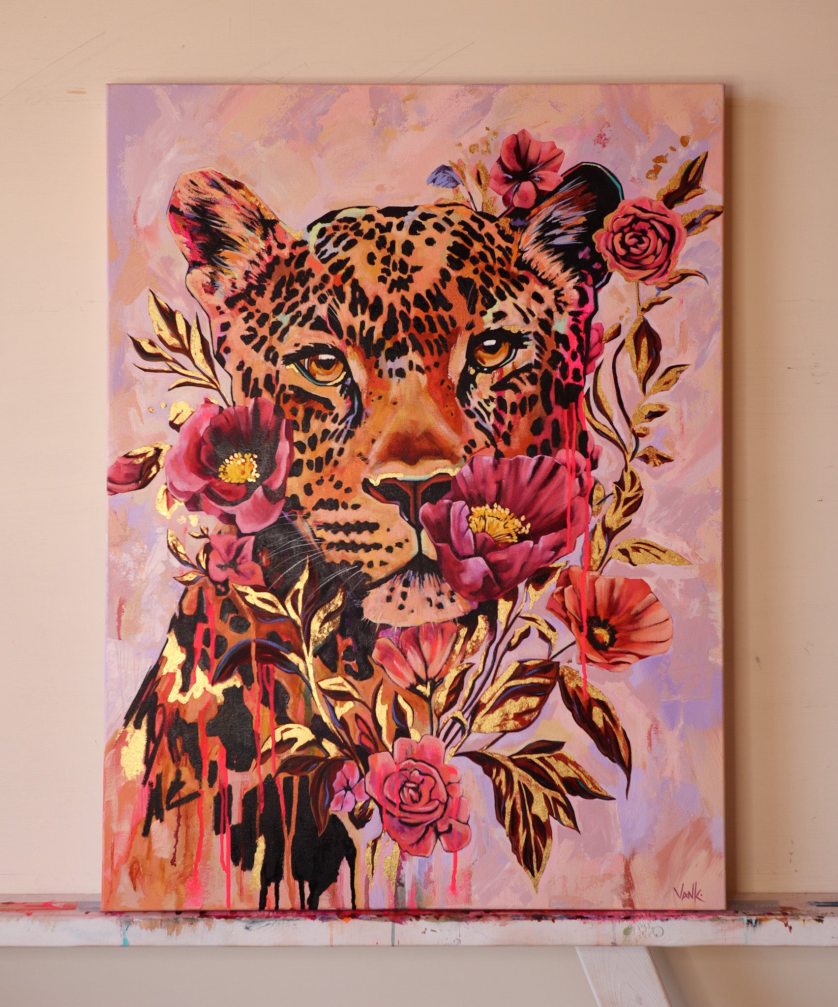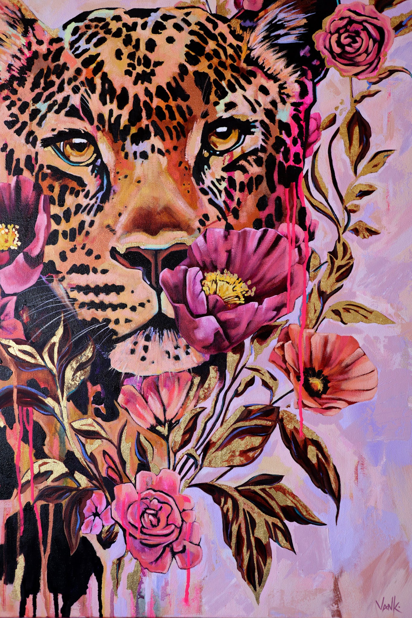 30” x 40” oil, mixed media and gold leaf on premium gallery wrapped canvas.